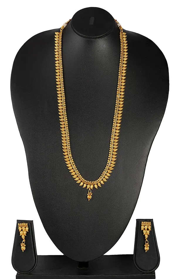 Gold Gold Plated Leaf Collection Long Strand Necklace Set With Adjustable T..More