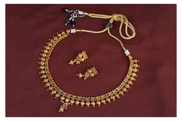 Gold Gold Plated Necklace Set With Adjustable Thread