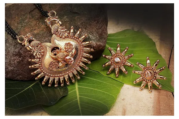 Gold Gold Plated Peacock Design Pendant Mangalsutra With Earring