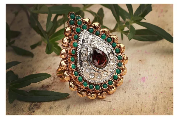 Gold Gold Plated St1 Studded Drop Design Adjustable Finger Ring