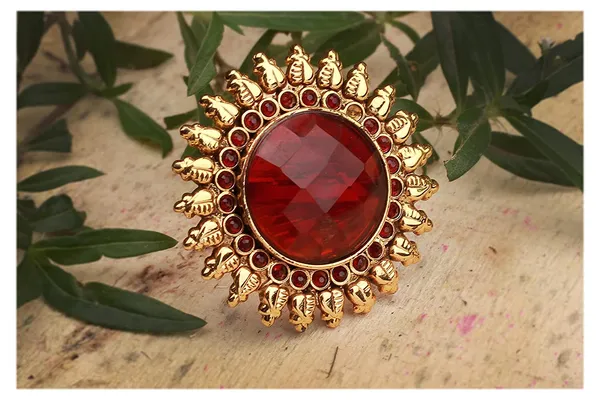 Gold Gold Plated St1 Studded Floral Adjustable Finger Ring