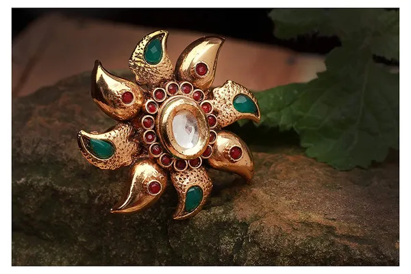 Gold Gold Plated St1 Studded Floral Design Adjustable Finger Ring