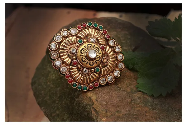 Gold Gold Plated St1 Studded Floral Design Adjustable Finger Ring