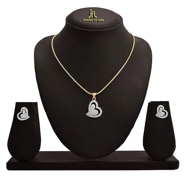 Gold Lovely Heart Shape American Diamond Pendant Set With Chains