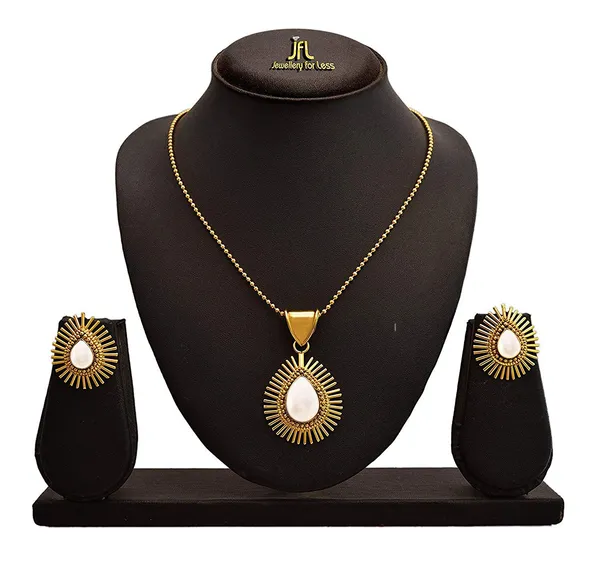 Gold Lovely Pearl Pendant With Chain & Earring Sets