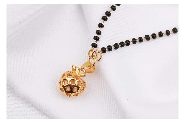 Gold Mangalsutra Gold Plated Apple Net Pendant With Black Beaded Golden Cha..More