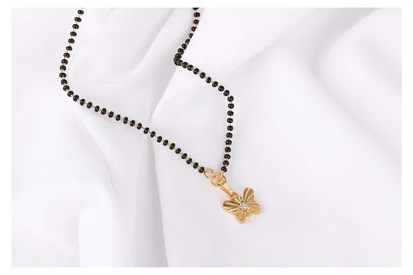 Gold Mangalsutra Gold Plated Cubic Zirconia Butterfly Pendant With Black Be..More