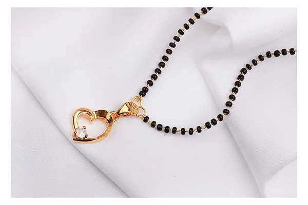 Gold Mangalsutra Gold Plated Cubic Zirconia Heart Solitaire Pendant With Bl..More