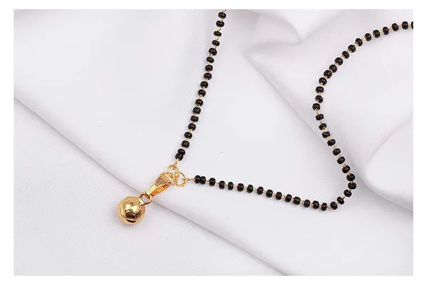 Gold Mangalsutra Gold Plated Flat Round Pendant With Black Beaded Golden Ch..More