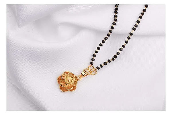 Gold Mangalsutra Gold Plated Floral Pendant With Black Beaded Golden Chain