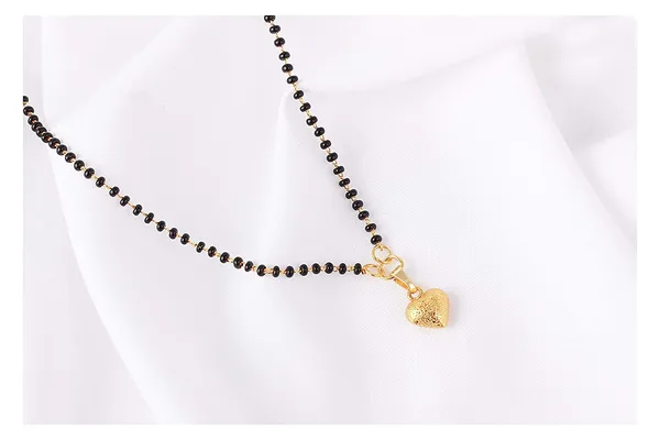 Gold Mangalsutra Gold Plated Glitter Heart Pendant With Black Beaded Golden..More