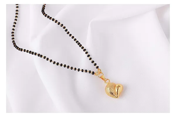 Gold Mangalsutra Gold Plated Heart Pendant With Black Beaded Golden Chain
