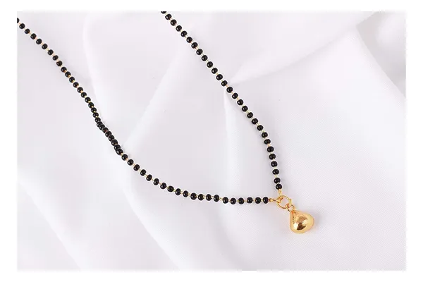 Gold Mangalsutra Gold Plated Simple Drop Pendant With Black Beaded Golden C..More
