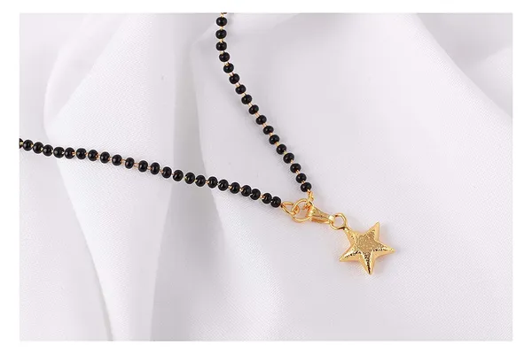 Gold Mangalsutra Gold Plated Star Pendant With Black Beaded Golden Chain