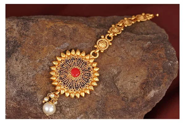 Gold Matte Gold Plated St1 And Filigree Design Drop Dangler Mangtika