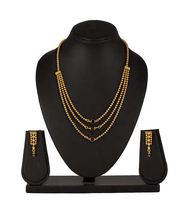 Gold Necklace (3 Line Earring) 1 G 3 Layer Gold Plated Beaded Chain With Bl..More