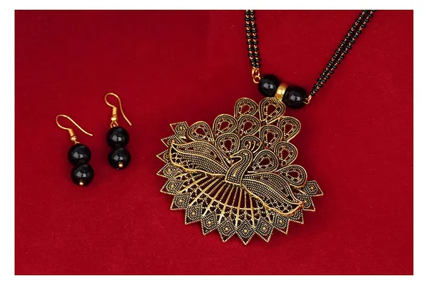 Gold Oxidise Gold Plated Peacock Pendant Mangalsutra