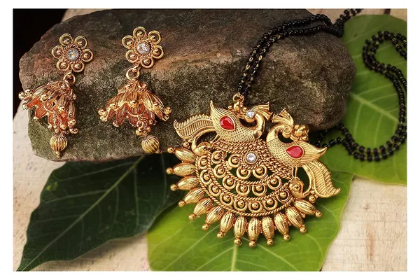 Gold Peacock Design Mangalsutra With Jhumka Earring
