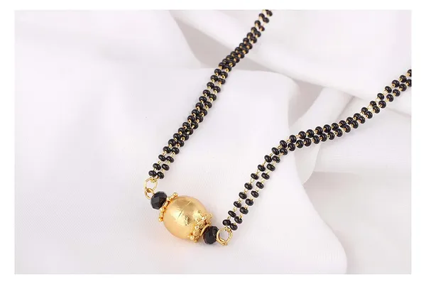 Gold Plated Dholak Shape Black Beaded Pendant Mangalsutra