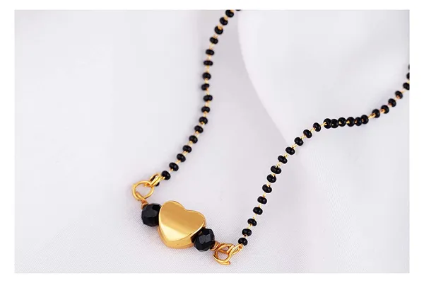 Gold Plated Gold Heart With Black Crystal Beads Pendant Mangalsutra