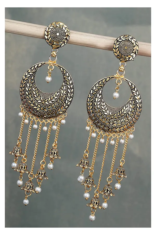 Gold Plated Gold Plated Artificial White Pearl Long Jhumka Earring