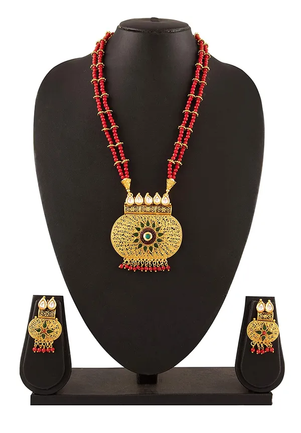 Gold Plated Necklace & Earrings Set With Kundan & Onyx St1 S