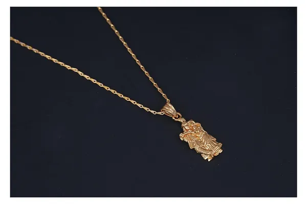 Gold Plated Radha Krishna Pendant With Chain For Women & Girls