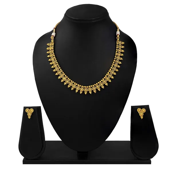 Gold Plated Spiral Flower Collection Choker Necklace Set With Adjustable Th..More