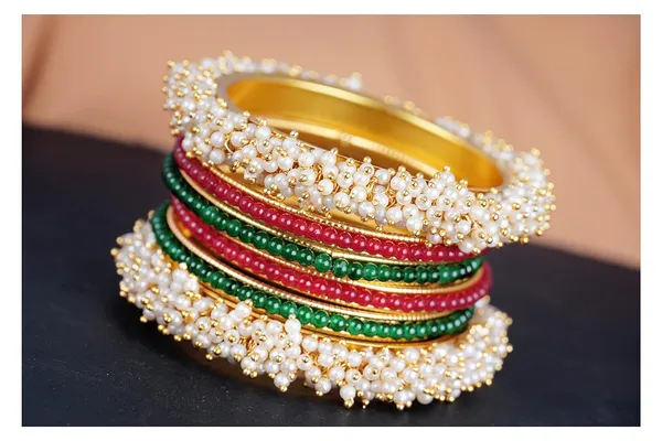 Gold Plated Traditional Combo Of Pearl Bangle And 4 Beads Bangle Set For Wo..More