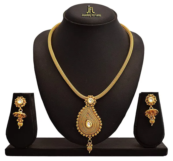 Gold Pretty Kundan Pendant With Chain & Earring Sets