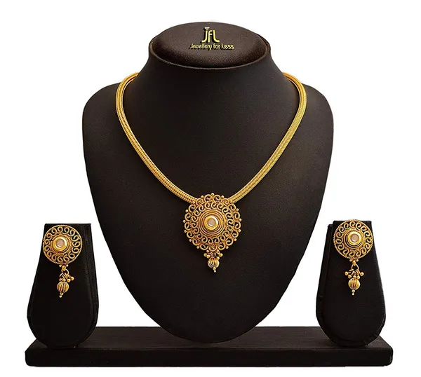 Gold Pretty Kundan Pendant With Chain & Earring Sets