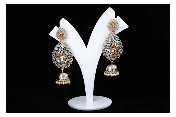 JFL - Jewellery for Less Gold Tone Polki Stone Drop Jhumka Earrings Women love jewellery specially Fashions jewellery adore a women You can wear this Earrings on all occasion This beautiful piece of jewellery will enhance your beauty and compliment you Make your moment memorable with this high quality fashion earrings This earrings women’s wear on like ring ceremony, wedding and any traditional festive time, daily wear,office wear This pretty earring pair makes your look impressive for any occasion It will make your moment memorable with this range This designed Earrings will go well matching With Any Attire Like dress,saree This Earrings will definitely be a treasured inclusion in every woman's jewellery collection new range of fashion earrings - Designer, Classy, Charming, Elegant, Appealing, Affordable, Casual as well as party wear, Pocket-friendly, Superb quality, High quality plating, Skin friendly, Non-allergic, Attractive, Mesmerising, etc