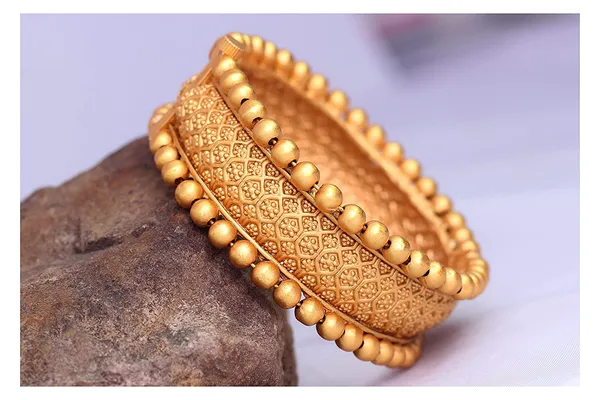 Gold Traditional Matte Finish Floral Designer Openable Kada For Women & Gir..More