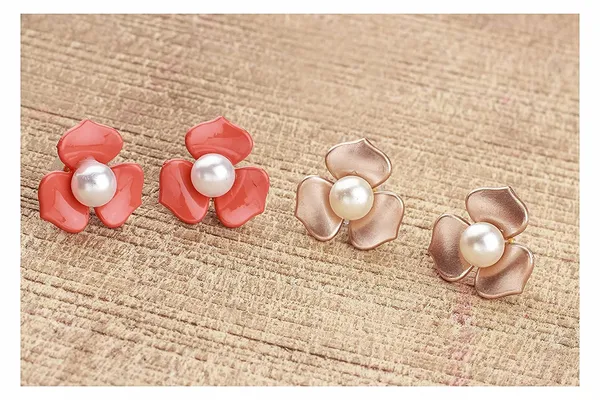Golden, Orange Fabulous Floral With Pearls Stud Earrings Set Of 2
