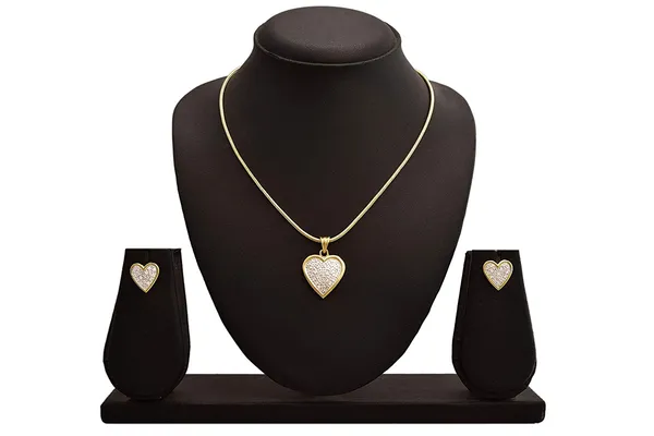 JFL - Ethnic Stylish One Gram Gold & Silver Plated Cz American Diamond Heart Designer Pendant Set