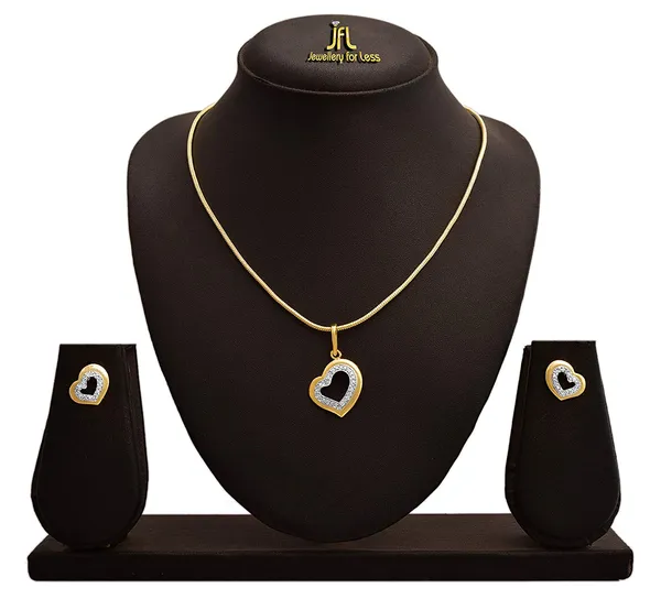 JFL - Ethnic Stylish One Gram Gold Cz American Diamond Heart Designer Pendant Set