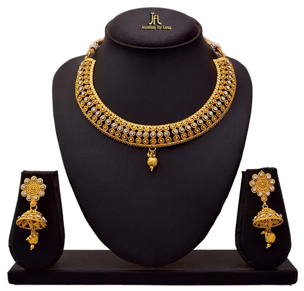 JFL - Traditional Ethnic One Gram Gold Plated Austrian Diamond Bead Designer Necklace Set with Earring & Girls