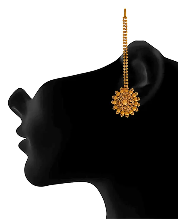 Golden 1 Gm Gold Plated Bahubali Earring With Connected Earchain