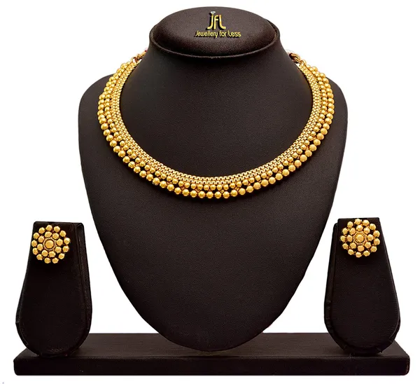 JFL -Traditional Ethnic One Gram Gold Plated Bead Designer Necklace Set with Earrings & Women