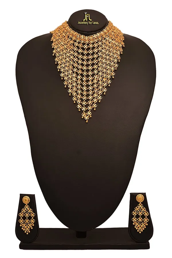 JFL -Traditional Ethnic One Gram Gold Plated Choker Designer Necklace Set With Intricate Jali Work