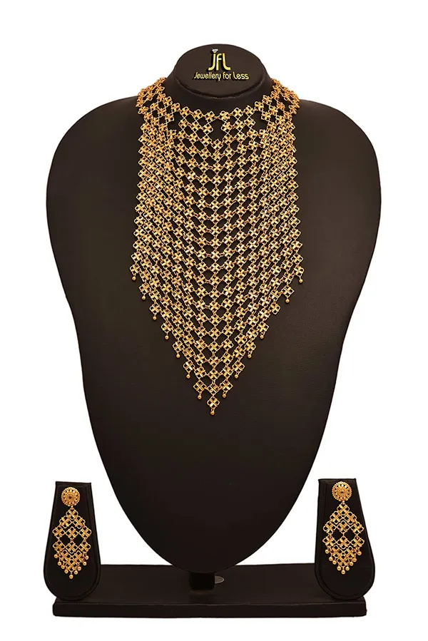 JFL -Traditional Ethnic One Gram Gold Plated Choker Designer Necklace Set With Intricate Jali Work