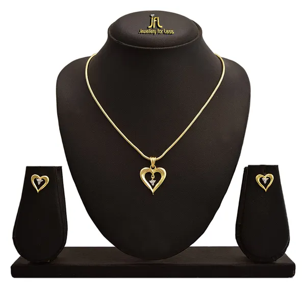 JFL - Ethnic Stylish One Gram Gold Plated Cz American Diamond Heart Designer Pendant Set
