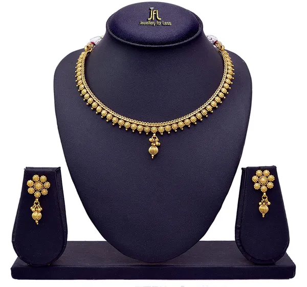 JFL -Traditional Ethnic One Gram Gold Plated Delicate Necklace Set / Jewellery Set
