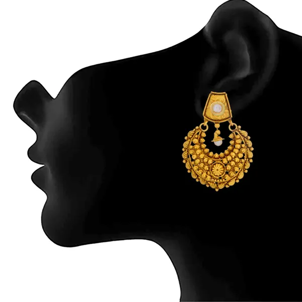 Golden 1 Gm Gold Plated Kundan Chand Bali Earrings