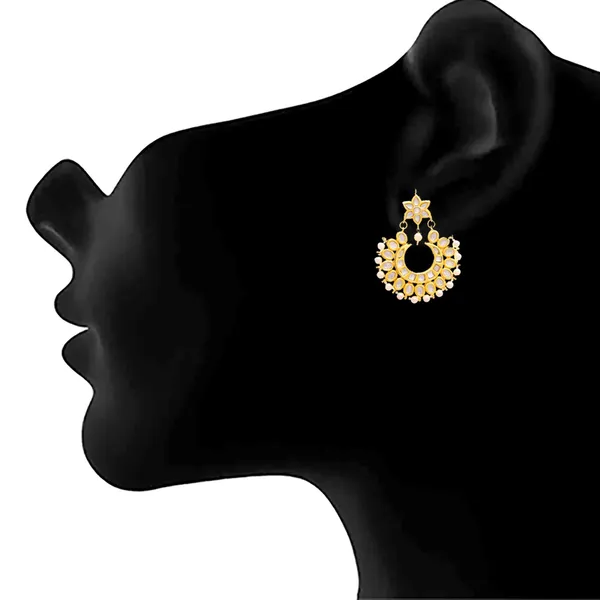 JFL-Traditional Ethnic One Gram Gold Plated Kundan Designer Earrings