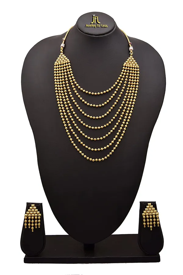 JFL - Traditional Ethnic One Gram Gold Plated Multi Strands Round Gold Bead Designer Necklace with Earrings Set & Girls