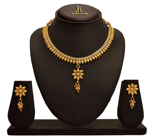 JFL - Traditional Ethnic One Gram Gold Plated Designer Necklace Set with Earring
