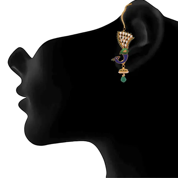 JFL -Traditional Ethnic One Gram Gold Plated Polki Diamond & Meenakari Peacock Designer With Chain Embellished Earring