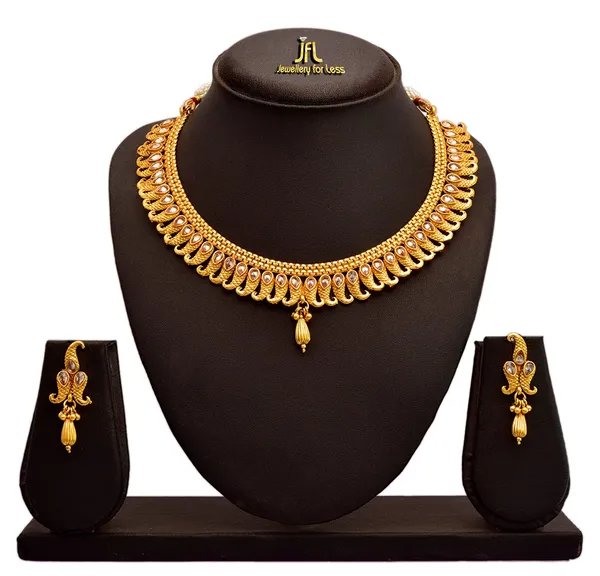 JFL - Traditional Ethnic One Gram Gold Plated Polki Diamond Designer Necklace Set with Earrings