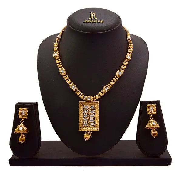 JFL - Traditional Ethnic One Gram Gold Plated Polki Diamond Designer Necklace Set With Earring & Girls